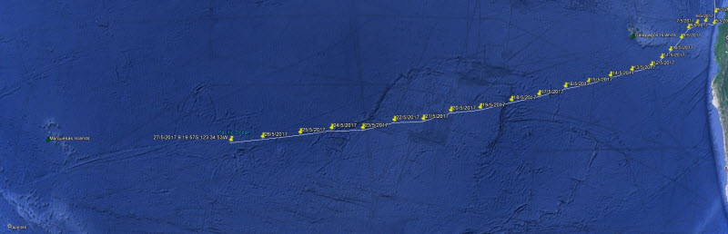 Check out what Pacific Ocean marine traffic looks like in almost real time AIS click here. We won't see Taj on this map as he will be using VFH radio rather than satellite. Marine VHF can transmit about 20 nautical miles (based on many different factors) which is more than enough to show up on a commercial ship's instruments.